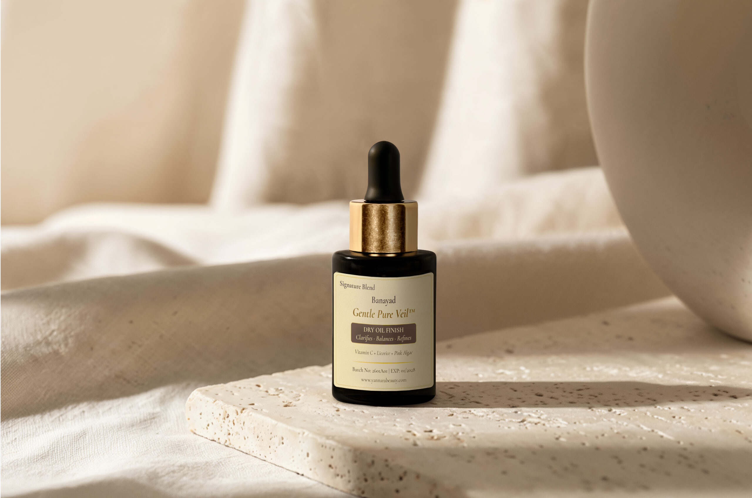 Texture is calibrated with equal care, ensuring the ritual feels light, breathable, and balanced in daily use. Nothing is added without purpose.